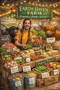 Visit Aric at Evergreen Brickworks Farmers Market in Toronto every Saturday from 8:30am to 12:30pm. Drop by the Earth Haven Farm table and say hi to Aric, visit and chat about the farm and what he has to sell.