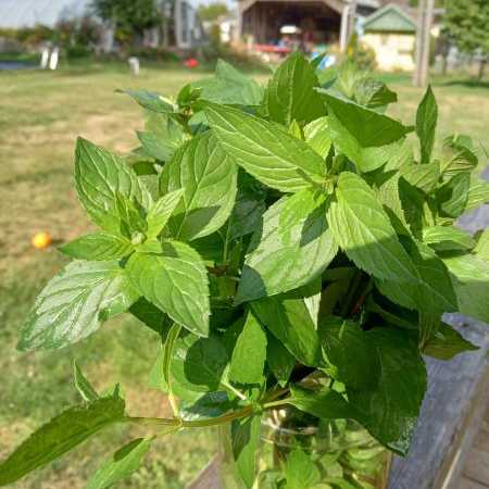 Our variety of chocolate mint grown here at Earth Haven Farm is a huge favourite of many customers. Mint is good for various health benefits, including aiding digestion, relieving indigestion, and improving brain function. It can also help freshen breath and soothe common cold symptoms. Mint can be used as a garnish. It can be dried and stored for later use or used fresh. Make it into a tea and serve hot or cold with a hint of lemon on hot summer days.